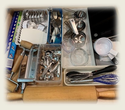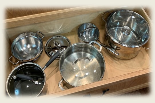 This is where drawers are superior in their purpose, because you can see everything in the simple motion of fully extending the drawer space. If you have a lot of cabinets and few drawers, do not despair! You can purchase inexpensive, sturdy, plastic bins to store on your shelves behind the cupboard doors. (Make sure to take measurements before you head to your nearest Wal Mart or Thrift Store for your new solution to more efficient storage.)