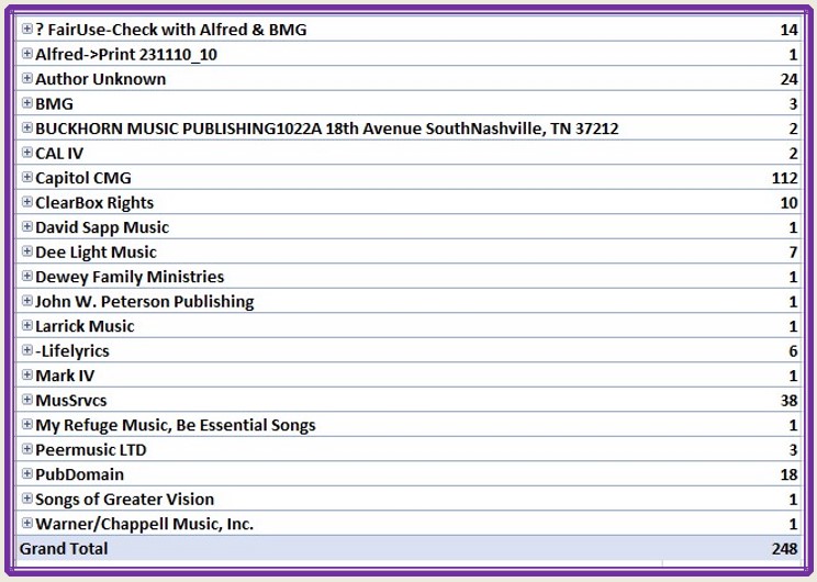 In the same week I finally had my last day of “working” for the Junction City Grange, I completed my research for publishers holding the rights to the songs I’m planning to include in my new custom song book! So next week I’ll start the process of submitting requests to the publishing companies: