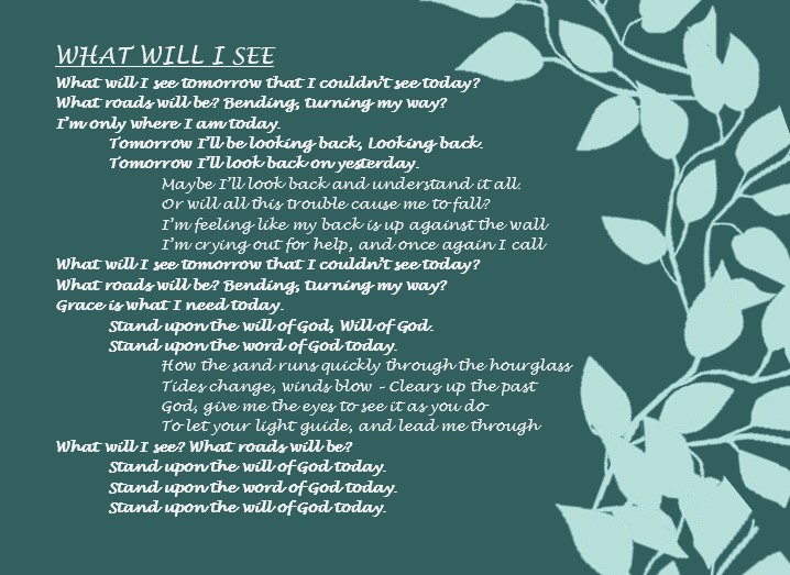This is the first song I ever wrote. In 2001, our church was going through a lot of trouble, and my heart was so grieved because I felt the pain of losing many loved ones. One night, words just began to flow into my heart with a melody. It was a song, and I knew it!
