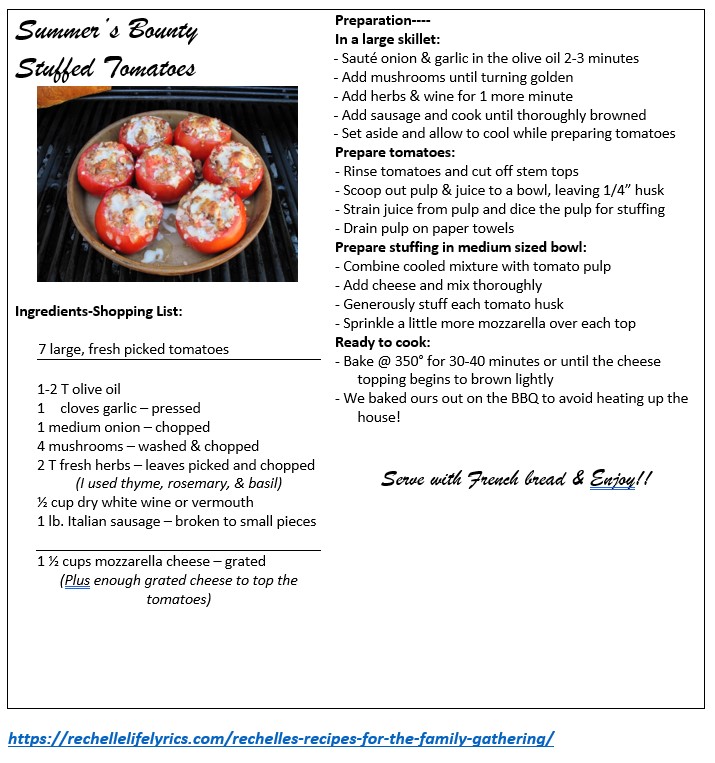 “Summer’s Bounty” as described in this link: Summer Food Planning
