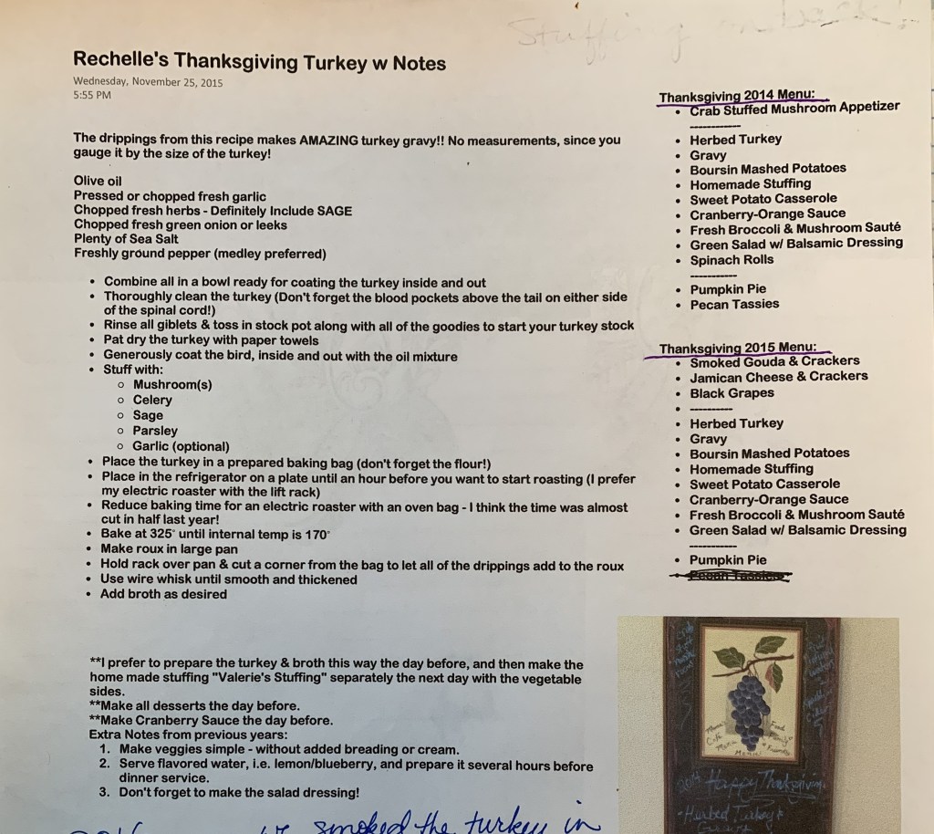Rechelle’s Thanksgiving Turkey with Notes